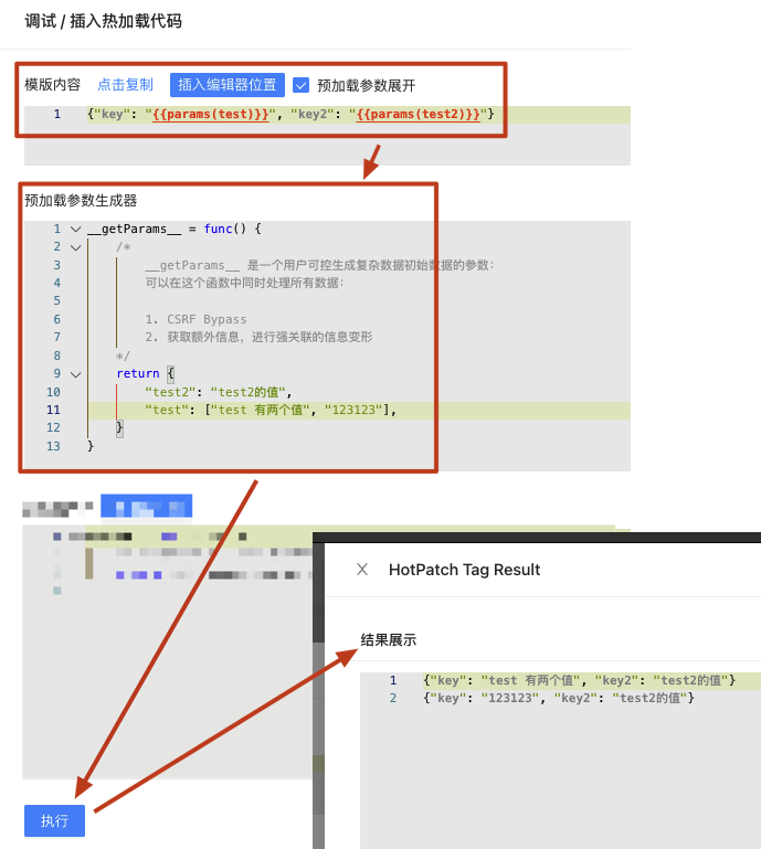 __getParams__ = func() {/*__getParams__ 是一个用户可控生成复杂数据初始数据的参数:可以在这个函数中同时处理所有数据:1. CSRF Bypass2. 获取额外信息,进行强关联的信息变形*/return {"test2": "test2的值","test": ["test 有两个值", "123123"],}}