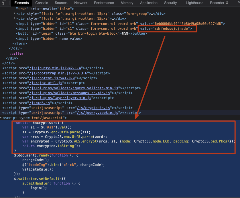 我们观察目标网站中的内容,发现实际上 S1 是硬编码的,经过验证后,我们可以用 Yak 实现上述加密: