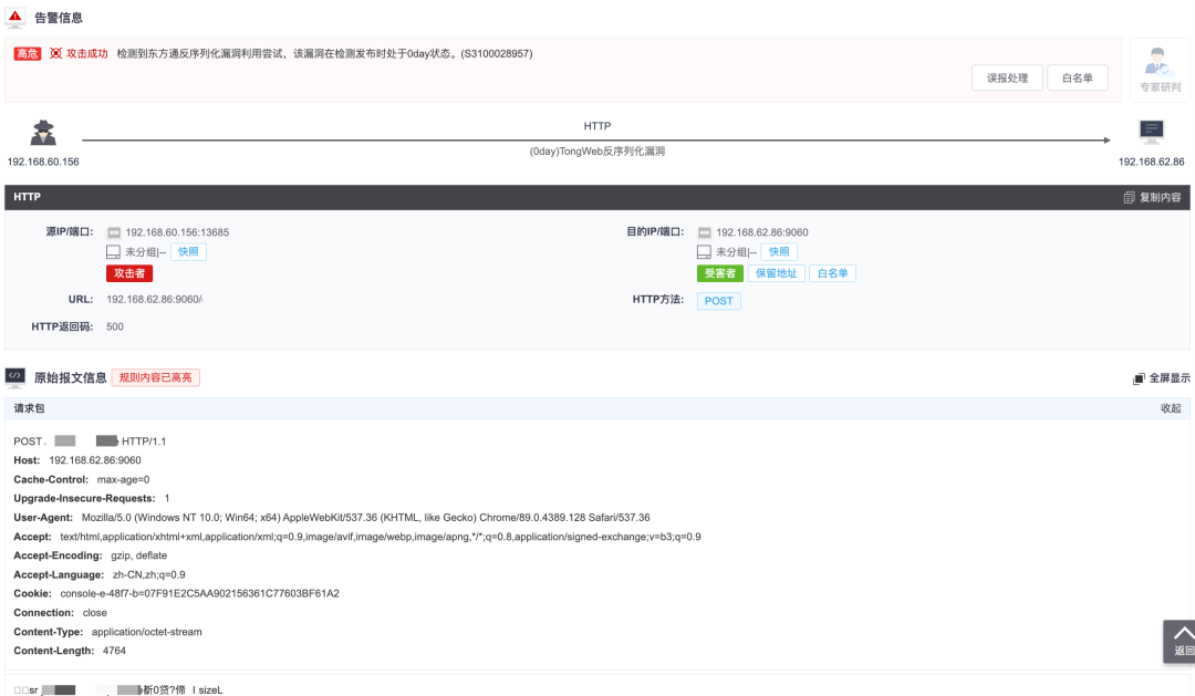 受影响版本:东方通应用服务器TongWeb V7.0.4.5及以下版本(TongWeb7.0C容器云版、TongWeb7.0.嵌入版不受影响)1、微步TDP威胁检测平台已支持检测及防护该漏洞。2、紧急缓解措施: