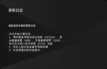 车载地图等车机程序更新 | 开放ACC/ALC等自动驾驶辅助功能 | |