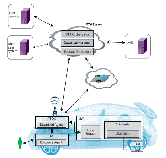 2)2015年—2019年,是整车OTA建设的关键时期,主机厂已经有统筹管理的意识,要把整车OTA的能力掌握在自己手上,统筹软件的准入准则、发布规范和整车固件升级的统筹管理;同时升级所涉及的ECU包含全车的ECU节点,包含以太网、CAN、FlexRay等节点。在OTA的方案中,统筹考虑功能安全。