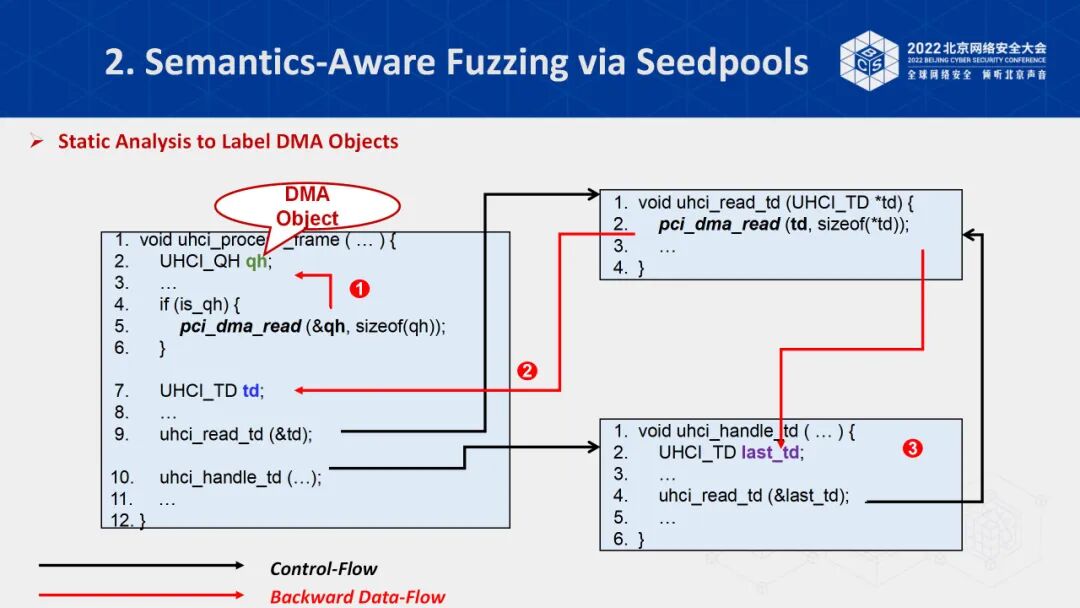 随后,为了解决节点类型差异带来的问题,潘博士使用静态分析方法,将代码中数据流依赖标注标签,根据不同类型的标签,构建对应的种子池。