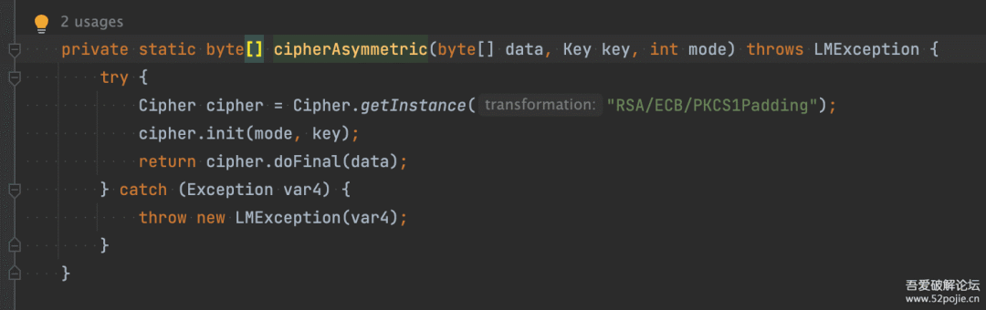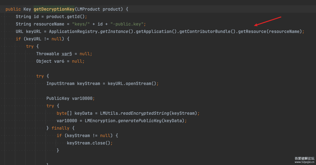 可以看到, 获取了一个publicKey 用来解密, 既然公钥解密, 那么加密就是私钥了 (这里有用,我们后面会生成密钥,用来注册license)