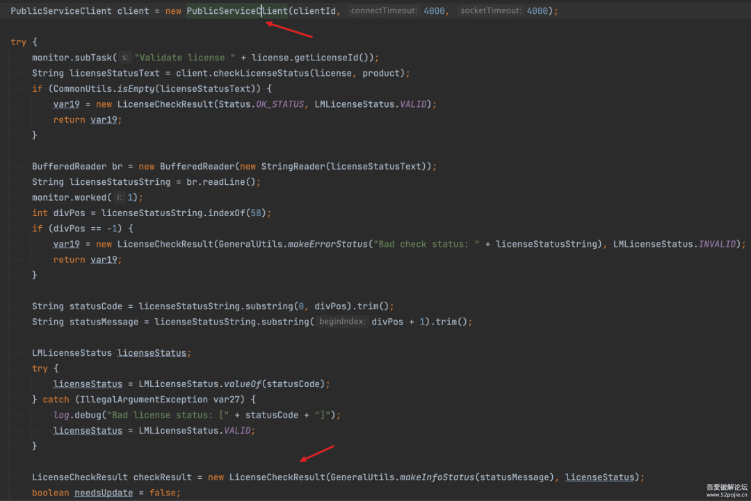 var19 = new LicenseCheckResult(GeneralUtils.makeErrorStatus("Bad check status: " + licenseStatusString), LMLicenseStatus.INVALID);