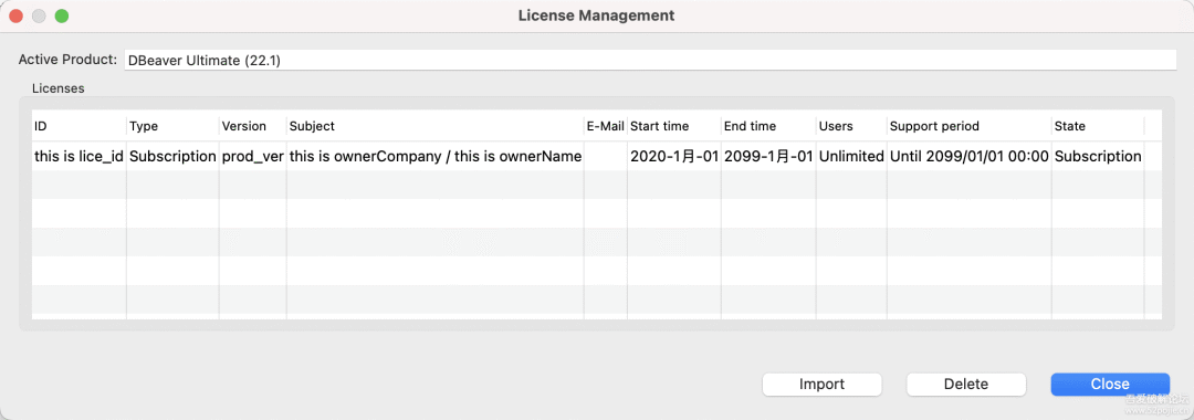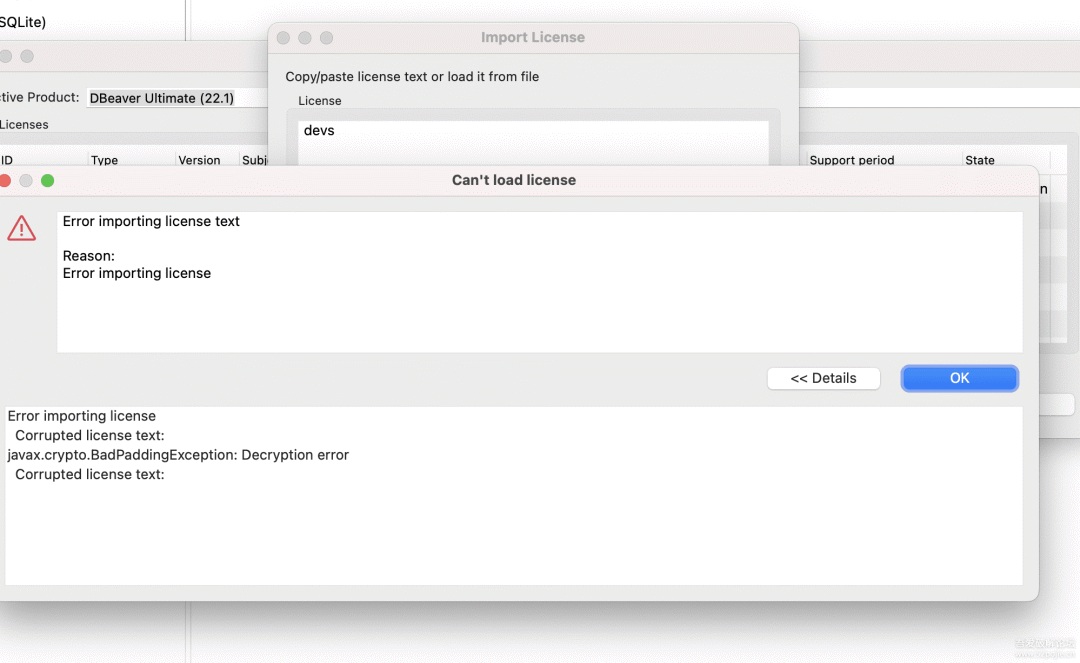 首先通过在程序界面 import 一个license ,查看关键字, 定位到目标 jar包 (也可以查看程序 log 日志, 位置: /Users/artemis/Library/DBeaverData/workspace6/.metadata)