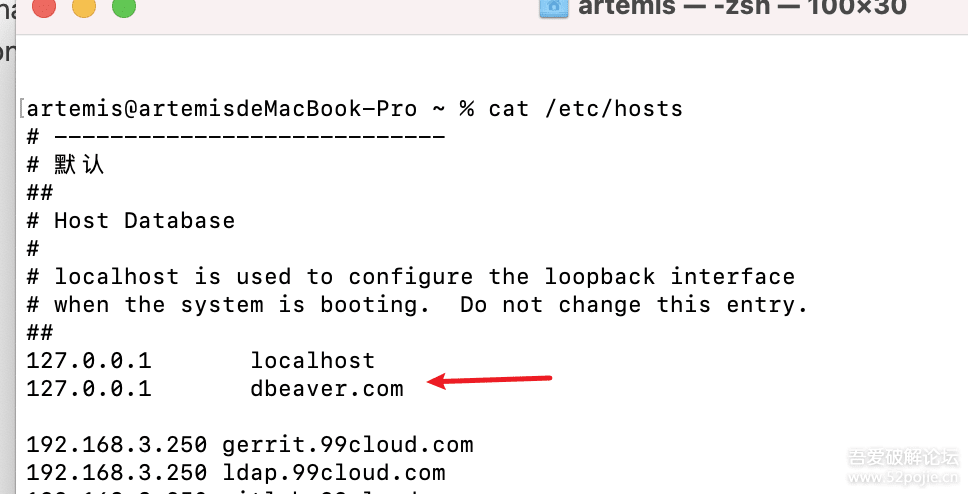 然后还需要配置 host 将 ‘dbeaver.com’ 转发到 127.0.0.1 (这个地址是 开charles 之后 将 DBeaver 配置代{过}{滤}理后抓到的)