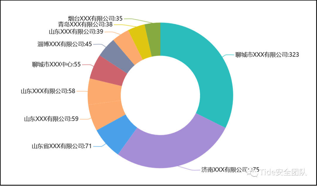 潮启移动端安全管控平台通过对各大移动应用市场上架的最新版本APP进行分析,截止2022年07月底发现山东省内移动应用的开发或运营单位最多的为聊城市XXXX有限公司,共计上架移动应用APP约323款;其余开发或运营APP较多的单位还有济南XXXX有限公司、山东XXXX有限公司、聊城市XXXX中心、淄博XXXX有限公司等。
