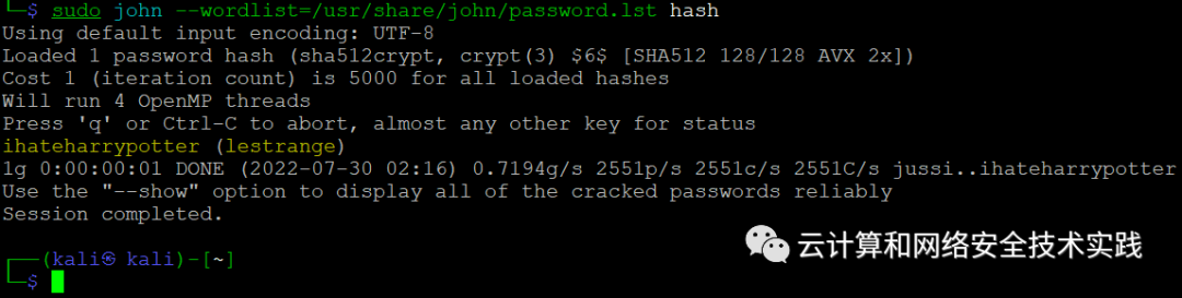 sudo john --wordlist=/usr/share/john/password.lst hash,