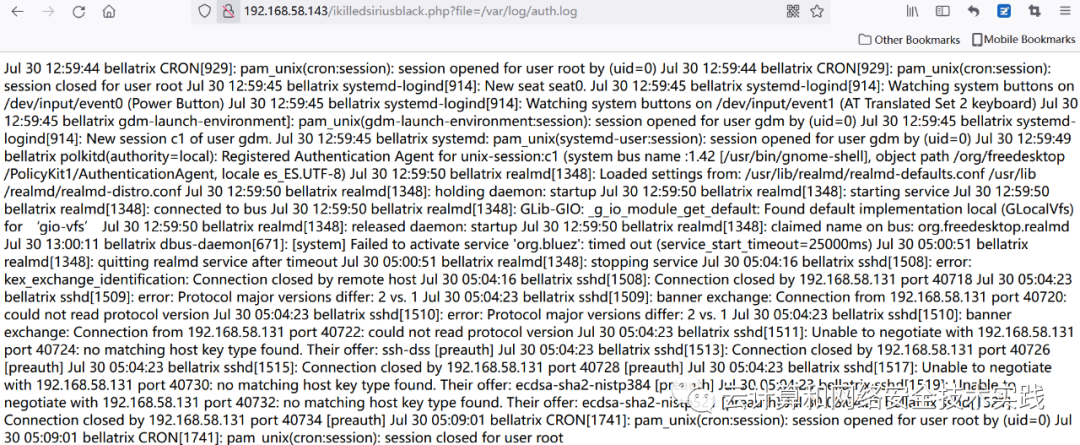 http://192.168.58.143/ikilledsiriusblack.php?file=/var/log/auth.log,
