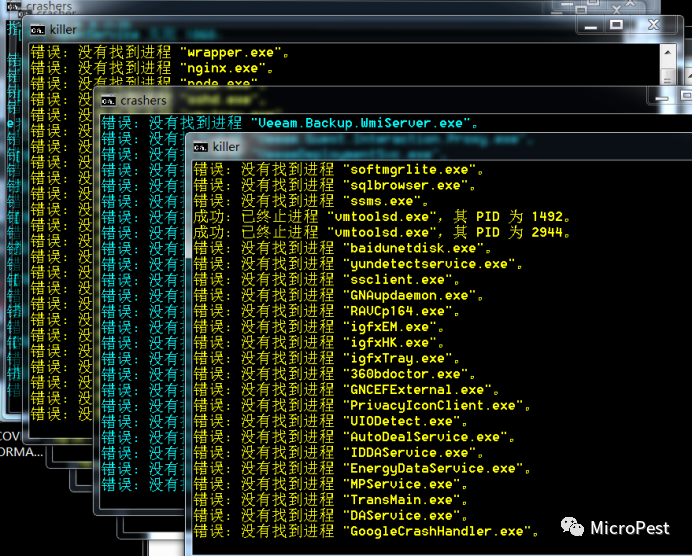 这个病毒文件由三部分组成:一个母文件+两个子文件;母文件由C#编写,子文件一个是批处理文件一个为C++编写的子程序。批处理完成“勒索词和要执行的命令,关闭、杀死安全类的服务、进程以及各类数据库的进程”。C++的子程序完成“删除卷影备份、部分种类文件的加密及在尾部写入88字节的解密所需信息”。因此,这个勒索是有解的。