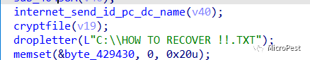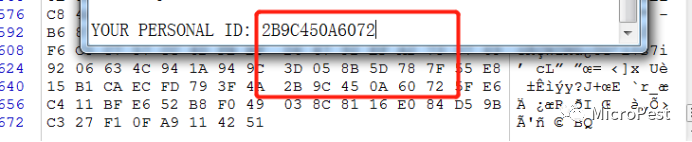 病毒在C盘根目录下创建名为HOW TO RECOVER !!.TXT的勒索信息文件,同时会在其他所有被加密目录下创建文件RECOVERY INFORMATION.txt,二者内容一致。不同受害机器上,勒索信息中只有Personal ID是不同的,该ID字符串是将pk_user前6个字节转为16进制的大写字符的方式得到。