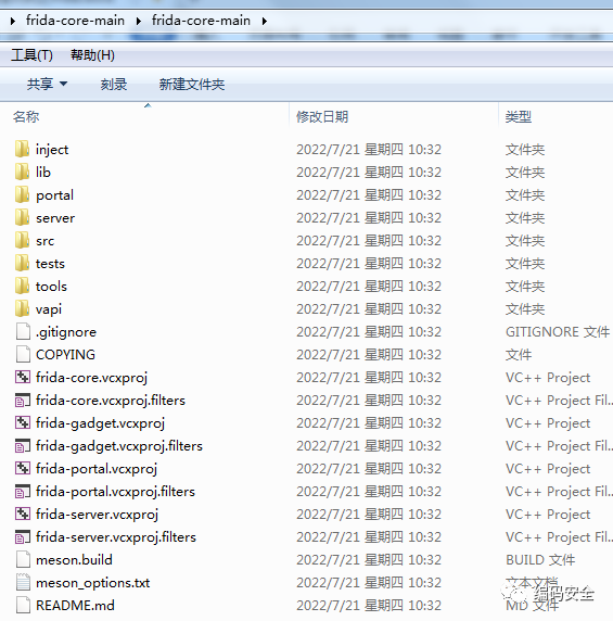 frida-core它是frida主要的功能源码部分,它的功能有进程注入、进程间通信、会话管理、脚本生命周期管理等功能,屏蔽部分底层的实现细节并给最终用户提供开箱即用的操作接口。它还包含了 frida 相关的大部分关键模块和组件,比如 frida-server、frida-gadget、frida-agent、frida-helper、frida-inject 以及之间的互相通信功能。