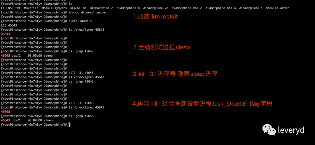 再次捕获云上在野容器攻击,TeamTNT黑产攻击方法揭秘 文章中提到一个内核rootkit-Diamorphine[1]
