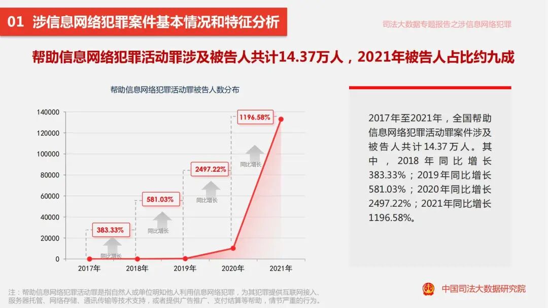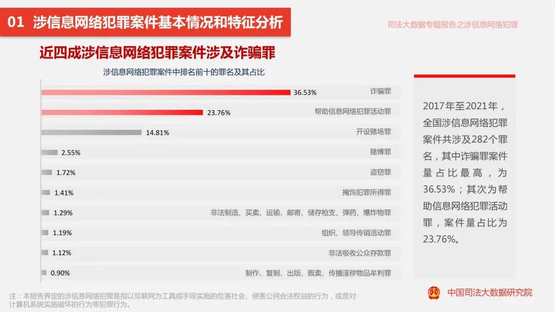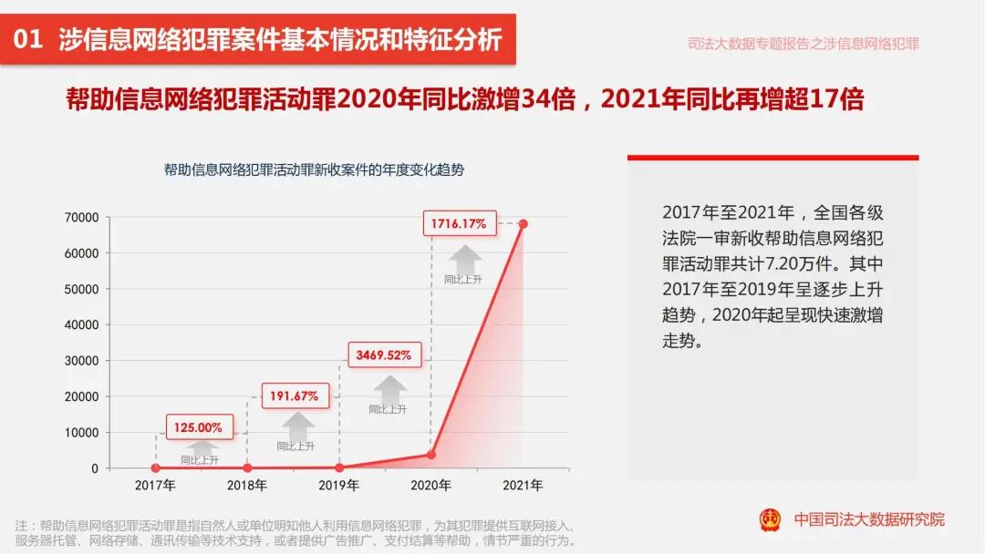 8月1日,中国司法大数据研究院(最高人民法院下属机构)正式对外发布《涉信息网络犯罪特点和趋势(2017.1-2021.12)司法大数据专题报告》(以下简称《报告》)。点击文末阅读原文可全文下载。