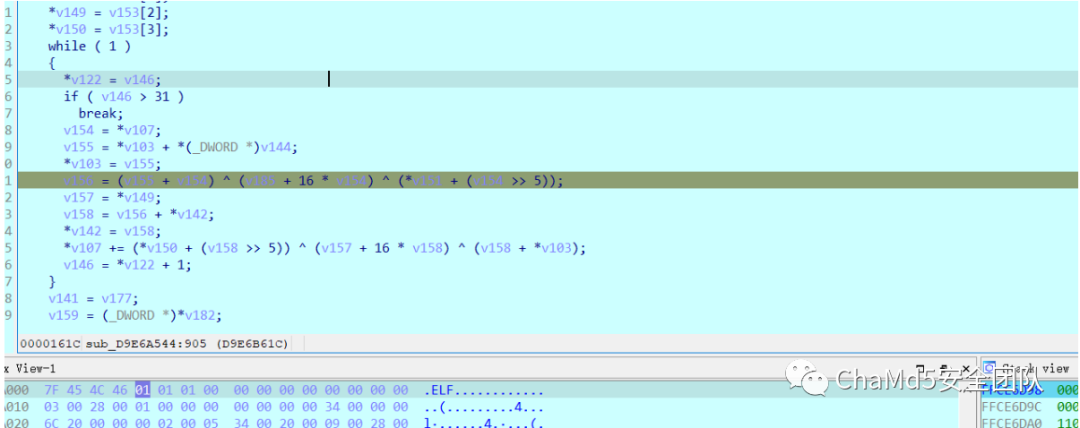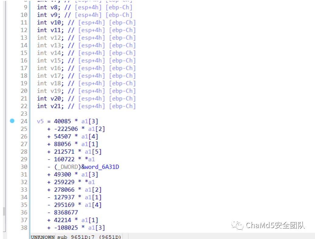 flag[2] = (((flag[2] >> 31 ^ flag[2] >> 30 ^ flag[2] >> 29 ^ flag[2] >> 28 ^ flag[2] >> 26 ^ flag[2] >> 24) & 1) | flag[2] << 1)