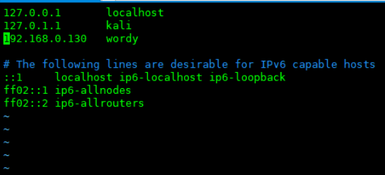 这里我们需要修改下Host,让http://wordy/指向192.168.0.130