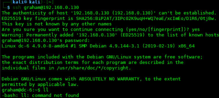 Kali:192.168.0.128 DC-6:192.168.0.130