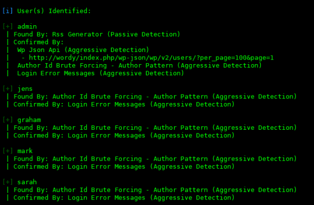 wpscan --url http://wordy/ -e u