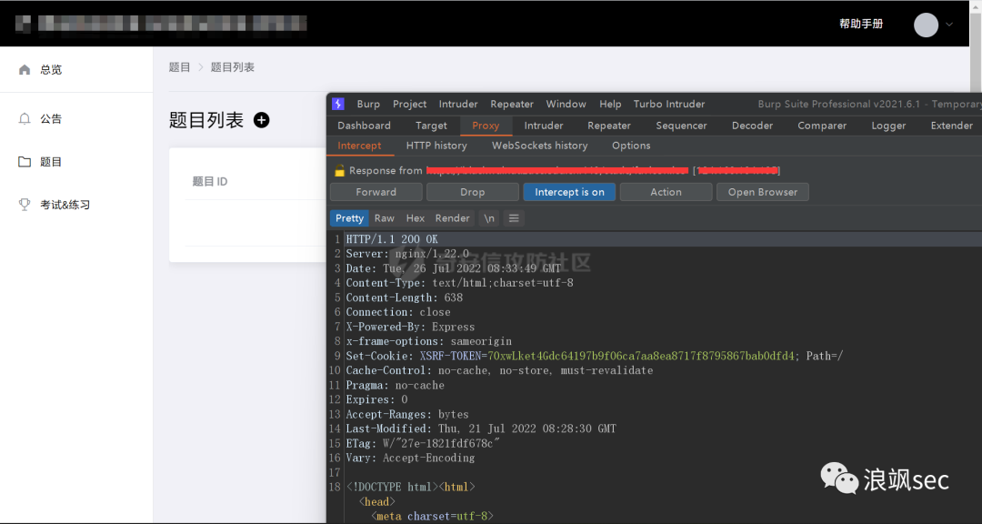 抓包进入,点击 “题目” ,后再放包,即可绕过跳转逻辑