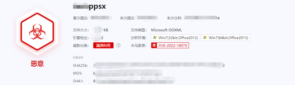 - 微步云沙箱已支持检测相关样本,用户可以将文档上传云沙箱S进行自动化检测。