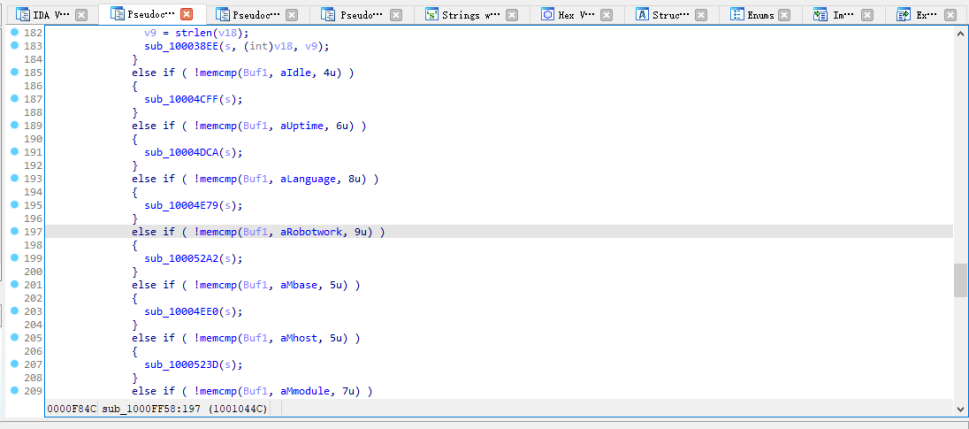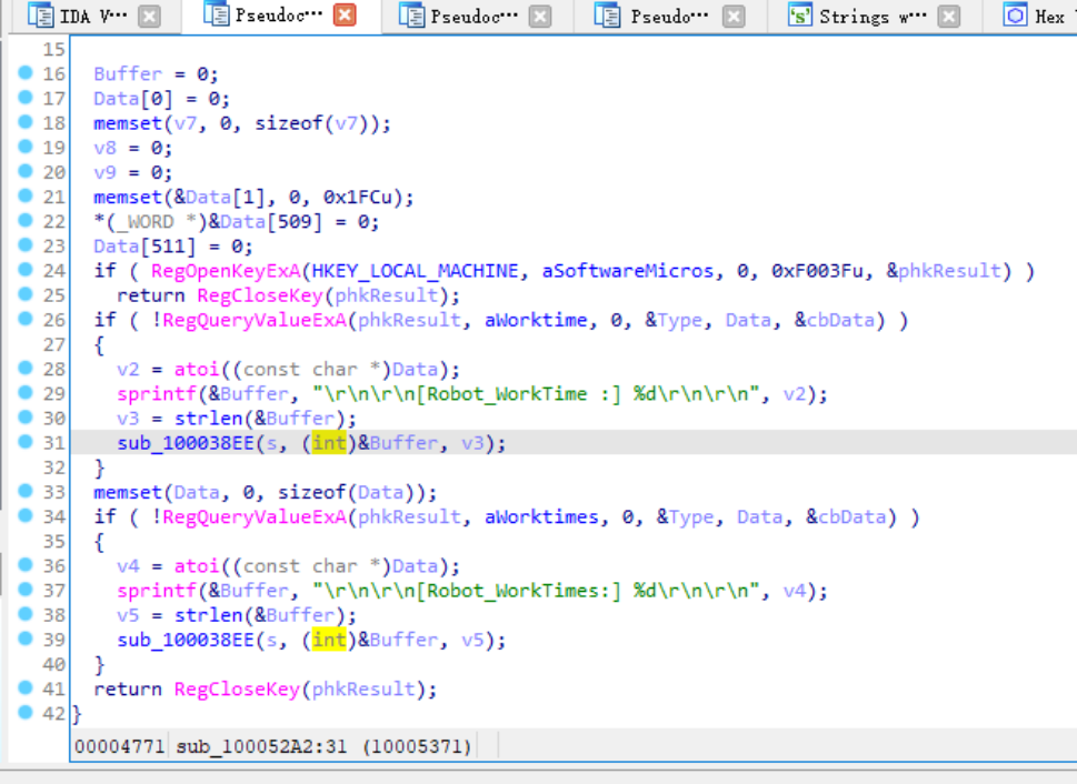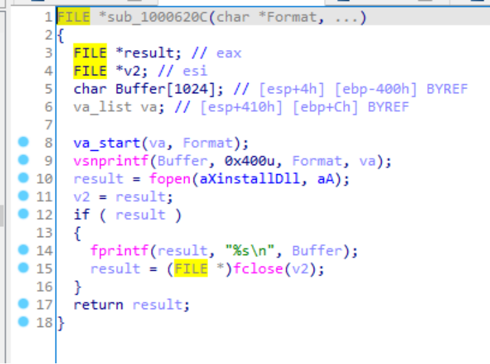 接着在几个函数里发现共同存在sub_1000620C。跟进去发现有操作文件读写的功能,进而对其操作的文件进一步查看,找到写入的文件名。