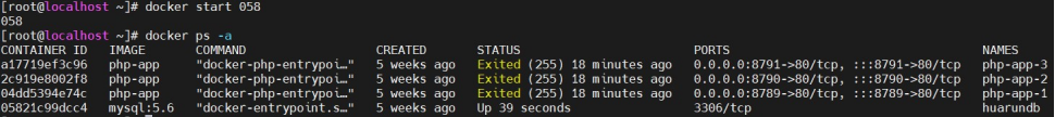 启动MySQL容器。执行命令“docker start 058”,这次发现可以正常启动MySQL容器了。