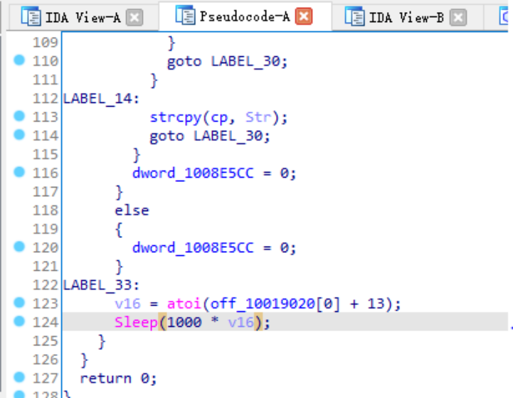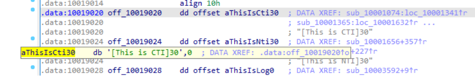 按快捷键g跳转到相应地址。发现休眠参数1000*V16,表示V16毫秒;接着双击off_10019020[0],发现参数V16对应的数据是30,偏移加13表示从该数组的第13位开始才是真正的数据(30)。