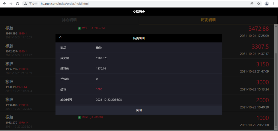 67.曾经的用户名为"fang25"的用户,其于2021-10-22日进行利益一笔交易,其成交价格为多少元?(格式:填写数字 保留小数点后三位 如:123.123) (5分)