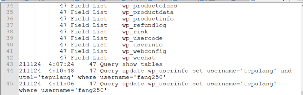 翻遍数据库并没有操作日志表,忽然想到前面翻MySQL容器的相关文件夹时发现的general_log日志。