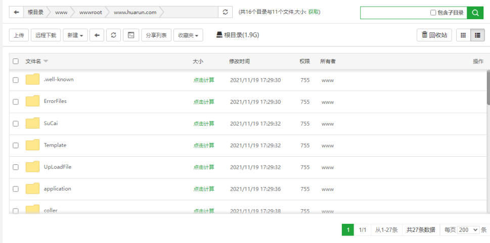 通过对宝塔配置文件的梳理,发现/www/wwwroot/www.huarun.com的网站文件已被删除,数据恢复失败。按上题思路查找备份文件,打开