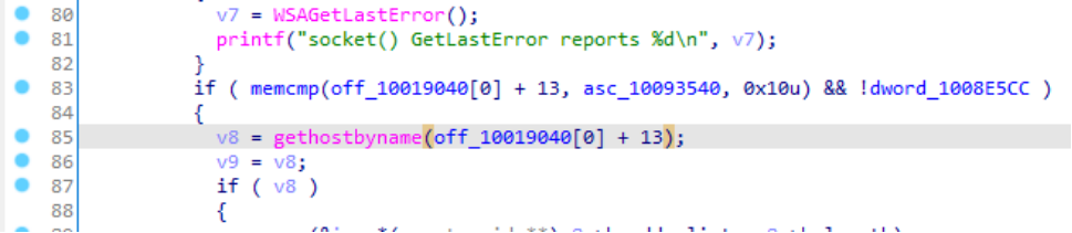 发现其参数为off_10019040[0] + 13。该参数表示从off_10019040偏移量13位开始才是最终的地址。![]()