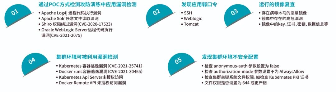 攻防演习前,需要全面排查内网安全隐患,发现并协助整改容器环境的脆弱性存留。通过各种不同的方法修复可能被攻击者利用的漏洞,加强系统安全配置,增加攻击者入侵的难度,提升安全防范水平。它与攻击面收敛、漏洞修复、安全策略优化等工作形成了完整的风险管理闭环。
