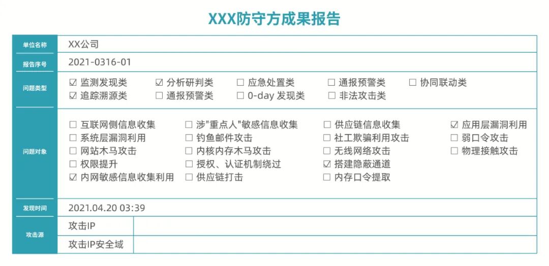 防守方在完成攻击确认到调查、还原的整个流程之后,需要整理出一份防守报告,阐述攻击的真实性、攻击的覆盖范围、攻击者的攻击路径及行为,并将报告提交给组织方。