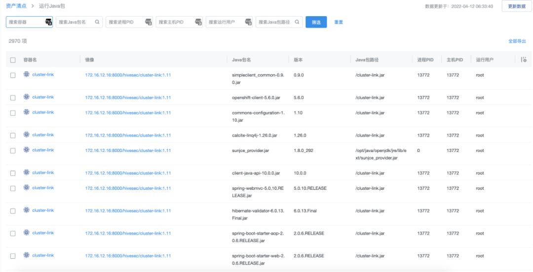 有了上述详细的资产看板之后,在发生入侵事件时,就可以快速反查容器业务应用,协助定位入侵的入口点以及影响范围。例如,在攻击者利用0day/1day漏洞时,防守方可通过应用级别的资产排查,分析现有业务受漏洞影响范围。