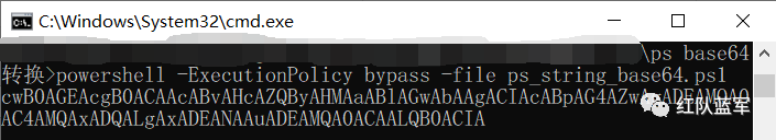 当前⽬录下打开 cmd 执⾏ powershell -executionpolicy bypass -file ps_string_base64.ps1