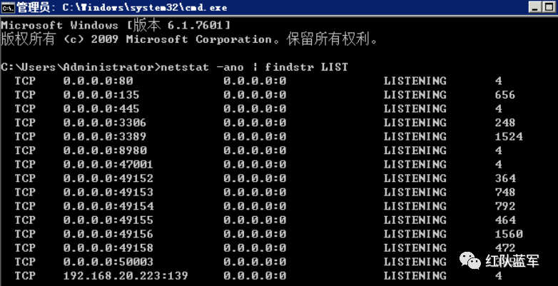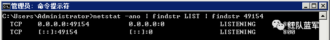 使⽤ netstat -ano | findstr LIST 命令检查已监听端⼝。含义如下: