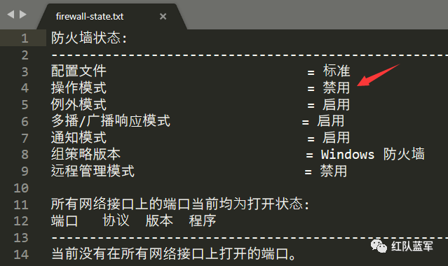 1 通过 netsh 命令将防⽕墙状态导出检查;