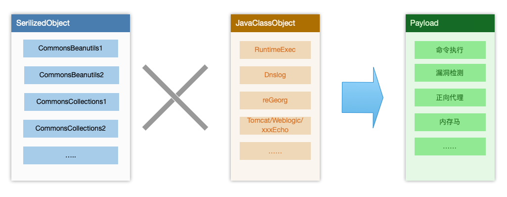 除了类加载的漏洞利用,将Gadget与Class组合,得到的payload还可适用于各种反序列化漏洞利用场景。