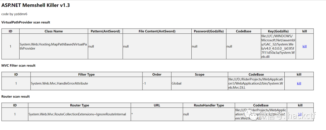 DuckMemoryScan工具作者为huoji;ASP.NET-Memshell-Scanner v1.3作者为HVVyzddmr6,喜欢的话给作者一个star。如侵权请联系删除。