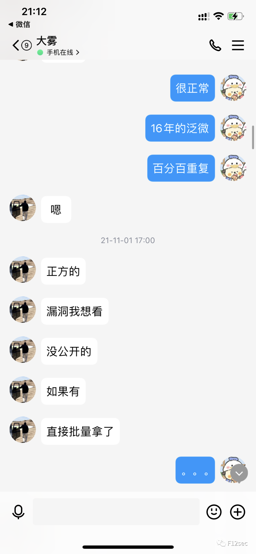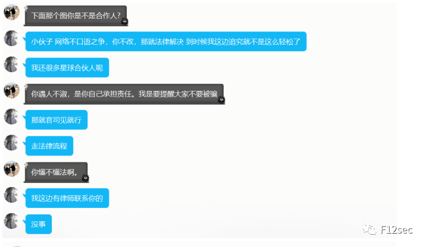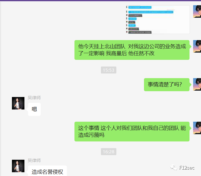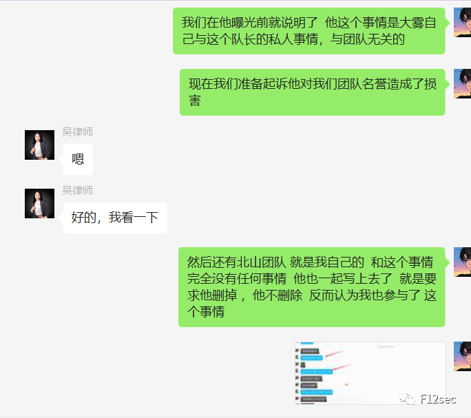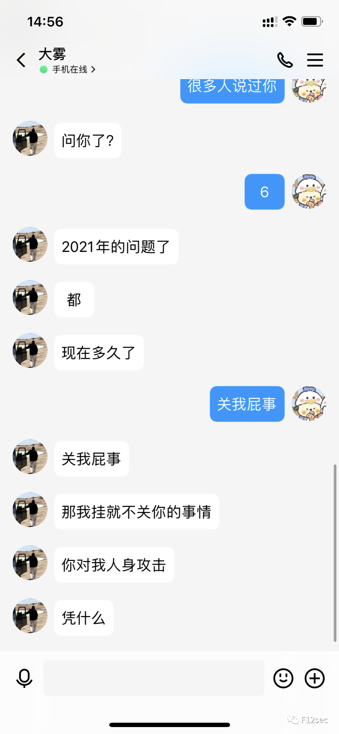我们团队于事先告诉了大雾,F12SEC和北山团队均与此事无关,要求他的曝光文章重写,而大雾的态度是十分强硬,就认为F12SEC团队有参与