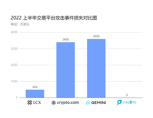 在上半年,全球共发生 4 起交易平台安全事件,损失超 7770 万美元,具体如下: