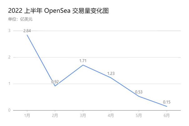 基于区块链技术的 NFT 也是需要重点关注的对象,随着一批头部 NFT 项目的崛起和各路名人的参与,NFT 极速发展。根据 Dune Analytics 的数据,OpenSea 的交易量在 1 月份达到上半年最高峰 2.84 亿美元,而随着加密货币市场的变化,OpenSea 在 6 月份的交易量只有 1558 万美元,下滑 94%。在 NFT 的热潮中,目前以太坊生态的 NFT 在市值和交易量依旧占据市场的主流,交易量超 90%。除了以太坊外,从近 30 天交易量和近 7 天交易量这些短期数据来看,Solana,Flow 等生态的 NFT 也正在快速发展,且表现亮眼,多链时代距离我们越来越近。