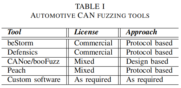 尽管他们对模糊的主要用途是帮助对目标车辆的系统进行反向工程。然而,在网络服务和一般信息系统中,模糊技术被用来破解软件。然而,到目前为止,汽车黑客的模糊测试的价值在于帮助发现汽车系统的功能。这是因为车辆内部系统的操作细节是商业机密。通常情况下,确定一个特定的CAN信息的唯一方法是在操作车辆功能时捕获网络数据包。在生产前的安全测试中,关于模糊测试的有用性的工作做得很少。在汽车系统的模糊测试方面有哪些可用的方法?
