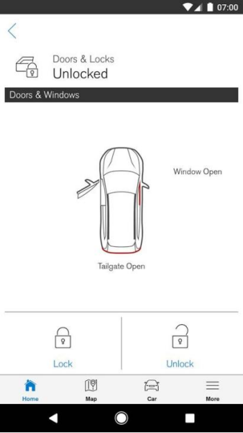 图12显示了复制功能的图示。外部手机应用程序向车辆信息娱乐系统ECU(又称车头装置)发送解锁命令。