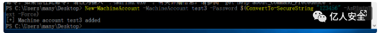 New-MachineAccount -MachineAccount test3 -Password $(ConvertTo-SecureString "123456" -AsPlainText -Force)