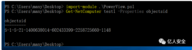 Get-NetComputer test1 -Properties objectsidtest1 sid:S-1-5-21-1400638014-602433399-2258725660-1148